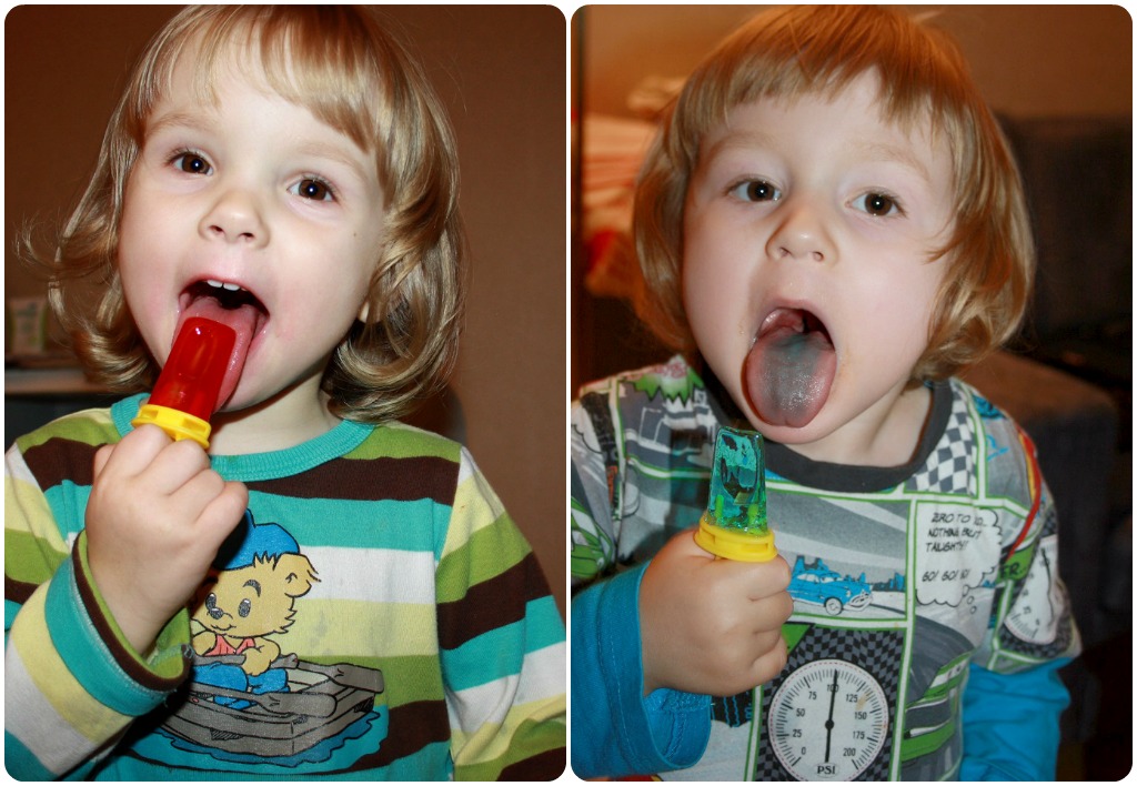 Grannast tunga vinner! Fast det var ju fuskigt, Isaacs blåa färg syntes bättre.
