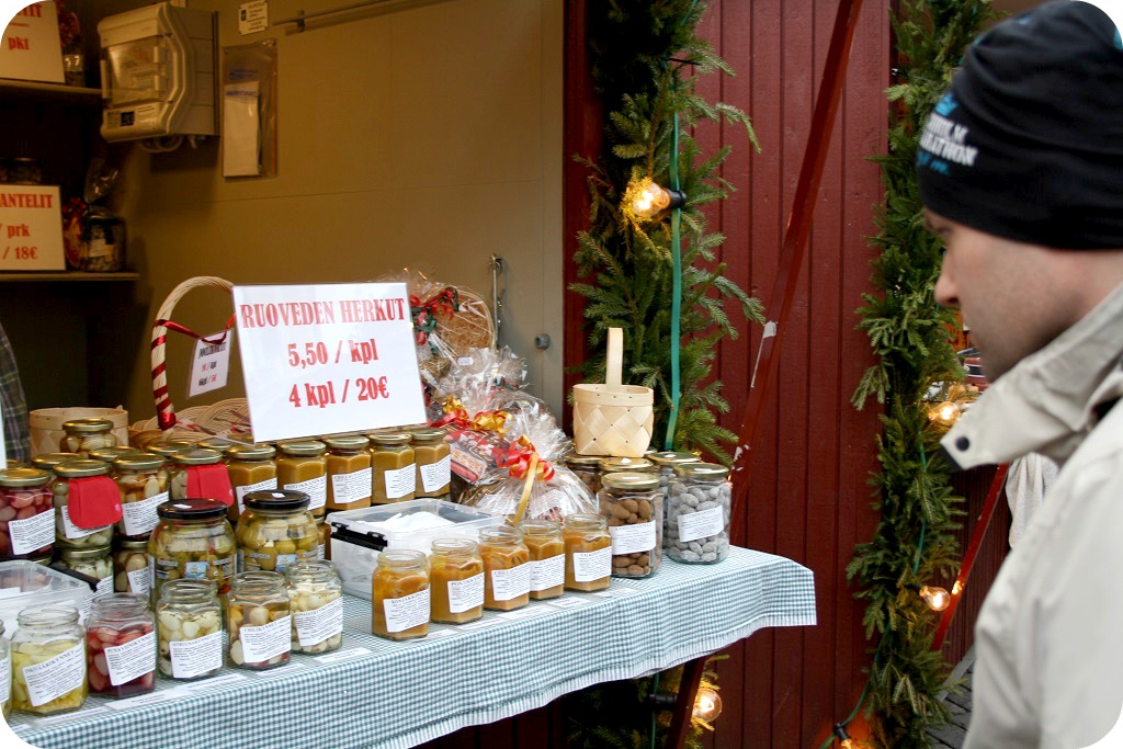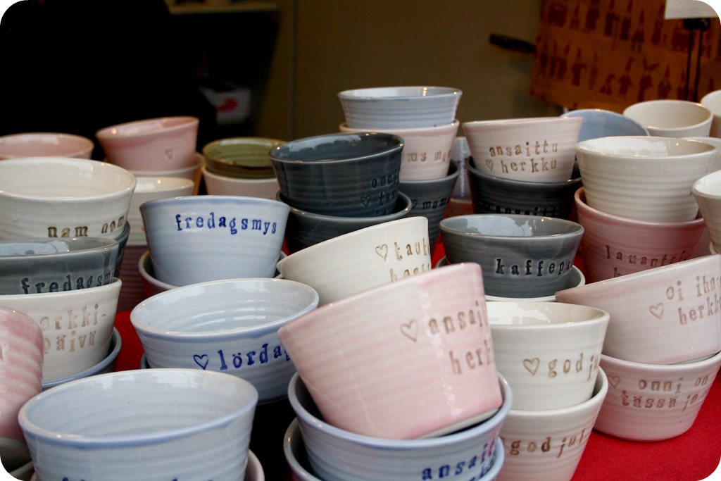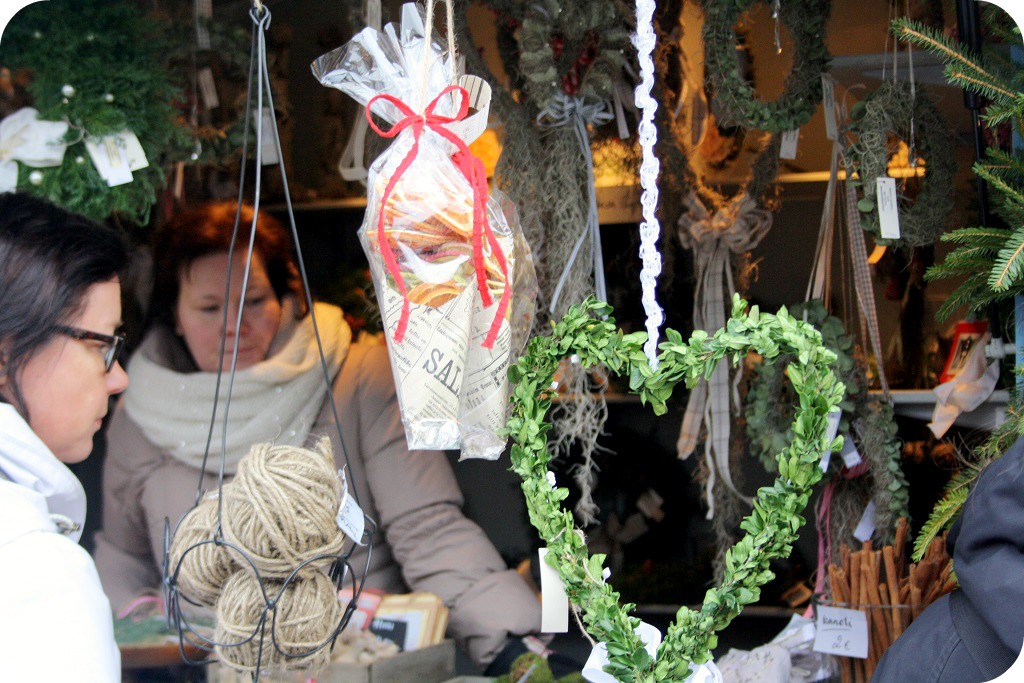 … och på stan, på jultorget. Mysiga koppar, lockande tomtar och dörrkransar, ljuvliga skålar, när vi smyger mot tredje advent.