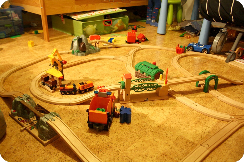 Det är väl ofta så, att man inte vågar tro så mycket barn, att man inte tror att de orkar, fast de kan så mycket. Kvällen blev således lite lugnare än vanligt, men de hann ändå träta om lekdatorer och pennor, medan jag byggde lite tågbana åt dem. William var helt uppslukad av en ny pysselbok, som han fick, FAST det är en dag till julafton. Det var en pysselbok med Angry Birds för 9,90, som innehöll över 1000 små klistermärken, så man kunde bygga sina egna banor. Nu har jag fått förklarat hur man ska klara varje bana på sjutusen olika sätt. Jag hoppas också de där arma små märkena hålls kvar i boken, för det är sjukt jobbigt att peta bort små klistermärken från golvet! So far, so good!