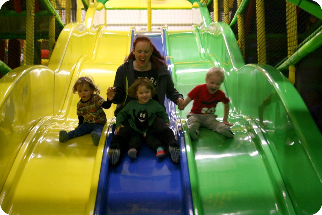 Jag åkte rutschkanor och klättrade med ungarna, ålade mig i bollhavet så länge det inte var så många andra barn där. Det går med en väldigt fart i den där långa rutschbanan, vi hade inte riktigt kläm på det i början, men ungarna klagade inte.