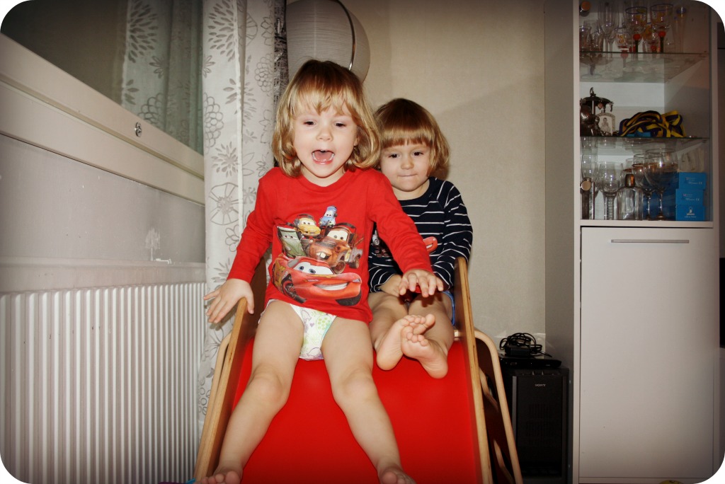 PS. Under den senaste månaden har det hänt nåt fantastiskt. Båda tvillingarna sover utan blöja utan att blöta ner sängen. Och de är utan även dagtid! Hah! Man ska inte forcera fram det, man ska vänta in det! Isaac fattade det genast, Milja behövde sin tid. Det var inte så lång tid trots allt. Och nu begär hon blöja när hon ska göra nummer två, men det spelar väl ingen roll. Isaac bajar i byxorna. Inte så mysigt, men eftersom det liksom hålls där, som en kokosboll (haha, förlåt en äcklig liknelse) så vet jag att han lär sig bajja på pottan också. Det har ju hänt många gånger.