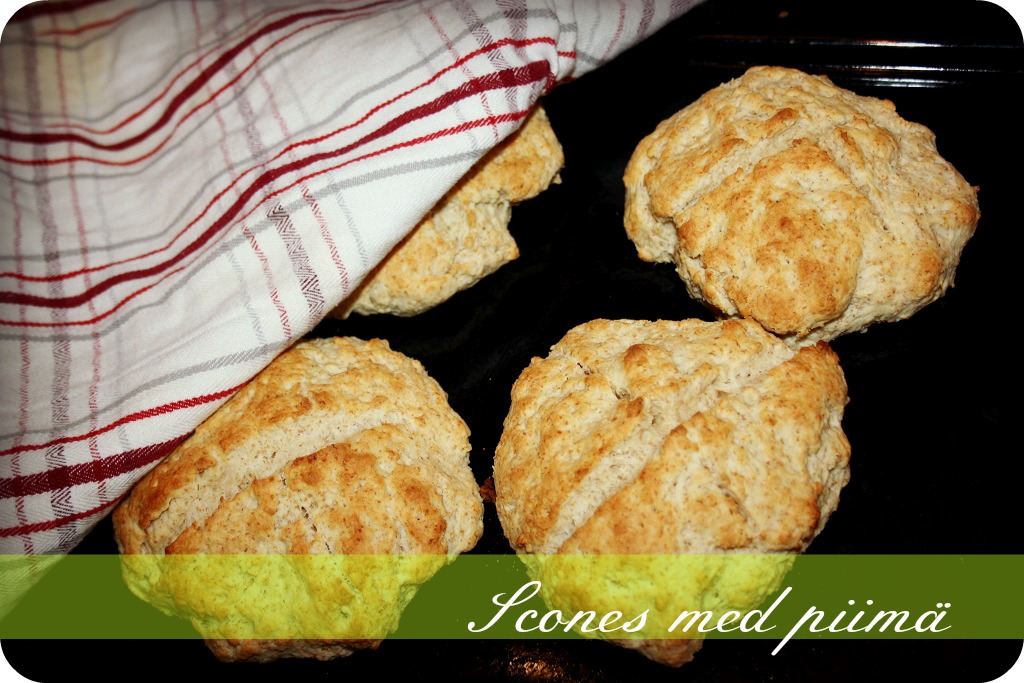 Idag slängde jag ihop lite scones med piimä. Receptet tog jag från scones.se. Det blev kanske inte så snygga, men väldans goda och ganska fluffiga, trots att de inte behöver jäsa alls. Man kan också ha i natruell yoghurt, istället för surmjölk eller piimä.