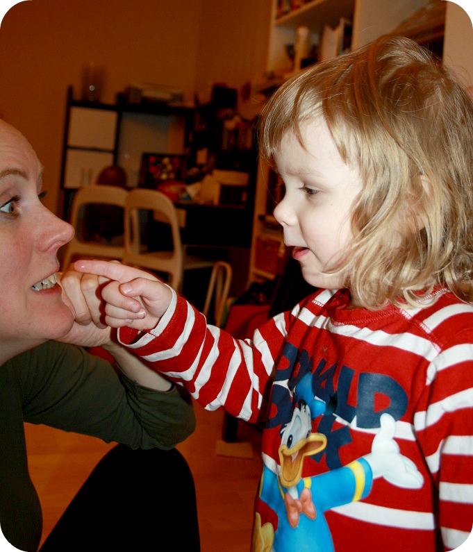 Twinsen har sedan en tid tillbaka, lärt sig att räkna. Just nu till tolv, både på finska och svenska. Vid läggdags är det alltid samma rutin; böckerna ska läsas, det ska sjungas och SEN får både Milja och Isaac, i tur och ordning, släcka sänglampan. Det betyder alltså att de ställer sig upp, räknar till tio (eller tolv) på valfritt språk, börjar om ibland och sen släcker de. Sen är det den andras tur och fenomenet upprepas. Idag skulle Milja räkna mina tänder. Fem stycken, kom vi fram till.