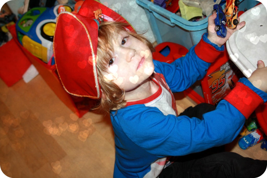 Vi är antagligen en av de får som inte firat Vändagen eller Alla hjärtans dag på nåt speciellt sätt. Isaac hade lite feber igår och rasslande hosta, han stannade hemma med mig och fick bli min lilla Valentin. Det var faktiskt skönt att vara bara med ett barn, som omväxling, det tyckte han också. Fast ju längre dagen gick, desto mer saknade han sina syskon. Det märks att de är mycket tillsammans och att de har börjat kunna leka ihop. Skönt och skönt!