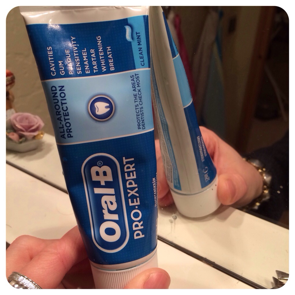 PS. Min mamma och syrra blev så förtjusta i tandkrämen som kom med, alltså den här Allround-grejen, att de tog den! 😀 Jag köpte en Sensitive-variant, som skummar mindre, huden lossnar inte i munnen, krämen smakar mindre och sämre, men känns också mer skonsam.