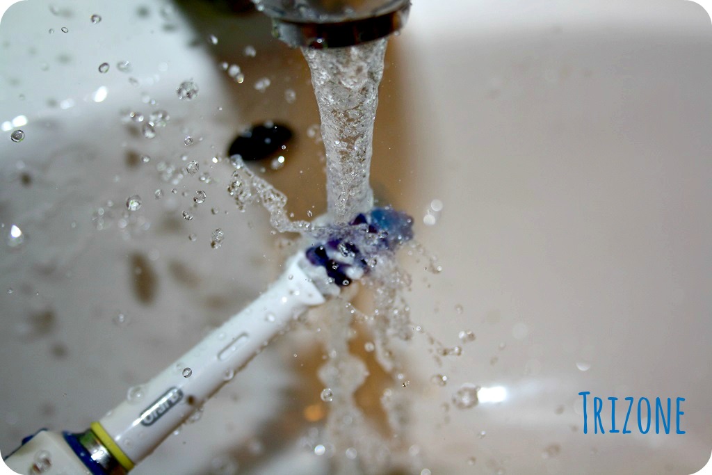 TriZone var min favorit. Jag vet inte om det framgår på bilden, men det stänker mest vatten och den har mest rörliga delar, den putsar riktigt bra mellan tänderna och längst bak! Borsten är däremot stor och det är svårt att komma åt, t.ex. bakom framtänderna.