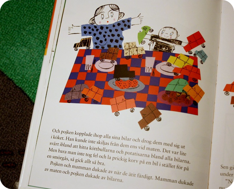 Ett av dagens boktips är en ny bok av Inger och Lasse Sandberg. Den heter ”Pojken med de hundra bilarna” och det är PRECIS såhär med Isaac! Hans bilar är med överallt, fast i en väska. ”Mamman dukade av maten och pojken dukade av bilarna”. Japp. Och vid dagis lägger han dem prydligt på hyllan, där får de vara hela dagen, men gud hjälpe oss, vilket vrål, om de inte är med hem! Mycket charmig bok förresten, av det lite längre slaget dock.