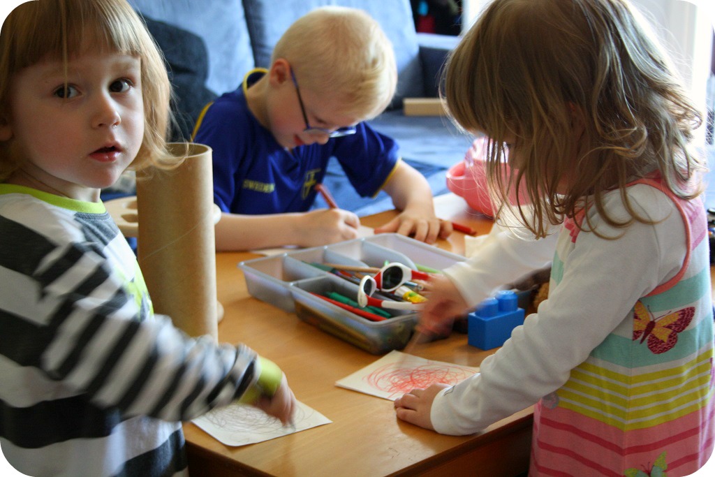 – Idag ska du få kort, mamma! sa tösen! Kom Isaac så ritar vi mamma ett kort! Hon fyller ål!