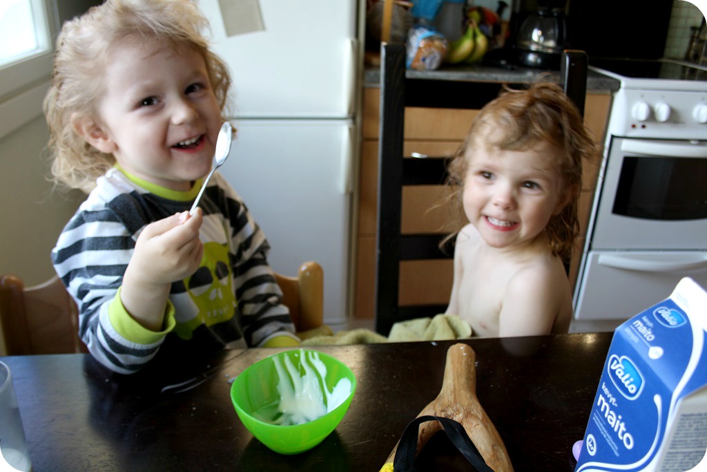 Så mycket man hinner med – mycket mer än vad som ryms på några rader i en blogg. Igår hade jag ställt in mig på att blogga. Bilderna fanns i kameran, jag hade tänkt ut vad jag skulle skriva. Så somnade jag mellan tvillingarna, i en enda hög av armar och ben och varma twins. Det var rätt mysigt, förutom att man får gå upp och borsta tänderna mitt i natten och bannas över att tvättmaskinen inte är hängd (så man ropar på sin man, som just lagt sig 😉 ).