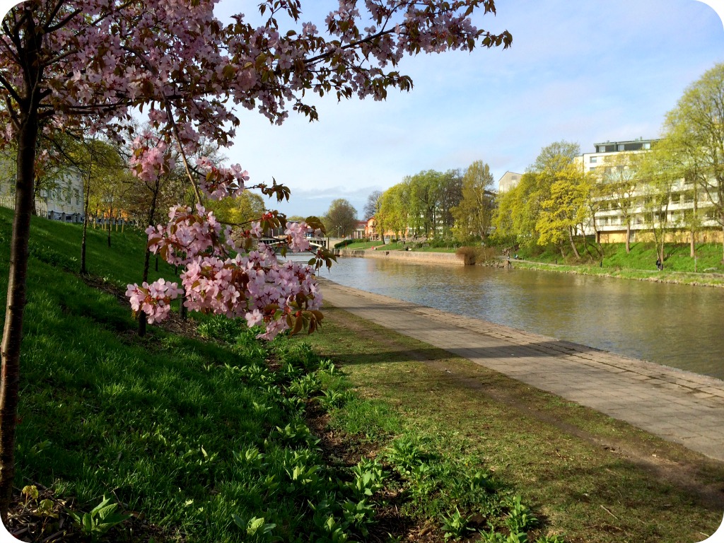 Den morgonen följde jag henne till ÅA, för att hon skulle slippa oroa sig över att hitta, när man ändå är orolig inför en prestation. Jag gick hem längs ån och tårarna bara trillade. Fast det var så ohyggligt vackert och mina klackskor klapprade mot kullerstenarna och gruset, där jag stannade och betraktade en nykrattad allé upp mot Domkyrkan.