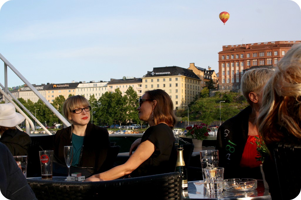 finvadermedballoKvällen spenderade vi ombord på en närbelägen restaurangbåt, som var hyrd. Det var 18 grader, men vinden blev lite kall mot slutet.