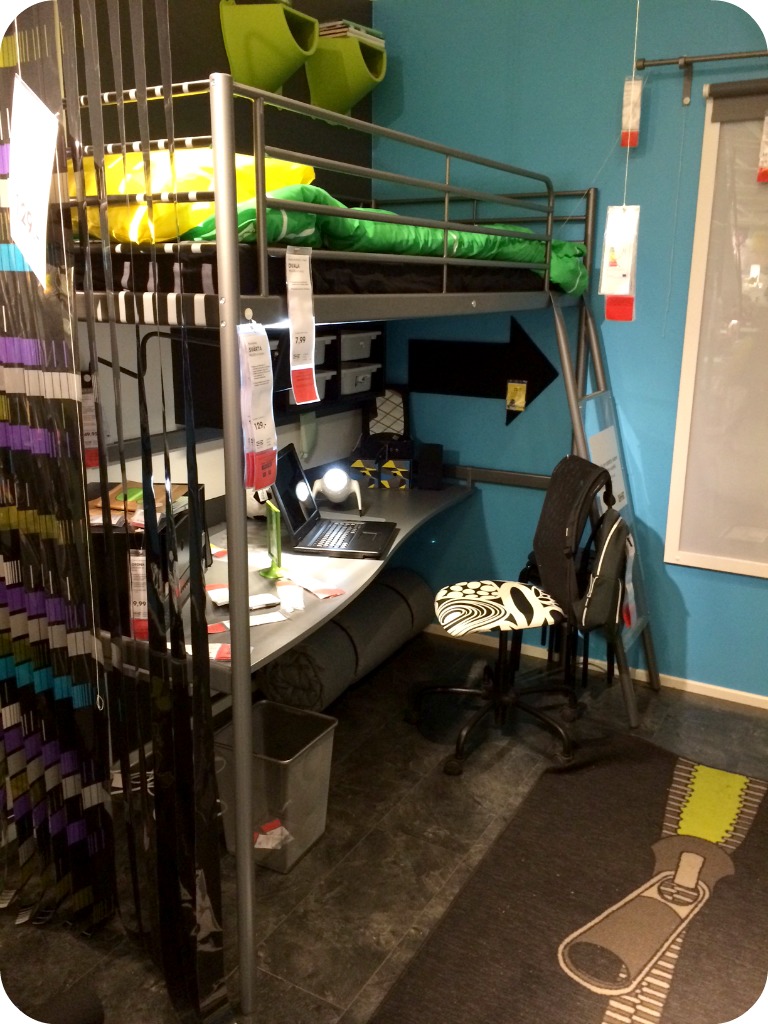 Jag har inrednignsmani. Vill göra om ALLT eller MYCKET och ungarnas rum och hej faderuttan! Det måste vara någon annalkande 39-årskris. W har redan ett skrivbord, men jag tänker på den här, den skulle spara mycket utrymme i hans rum och det blir mer plats över till lek. Å andra sidan får inte gästsoffan plats då längre.