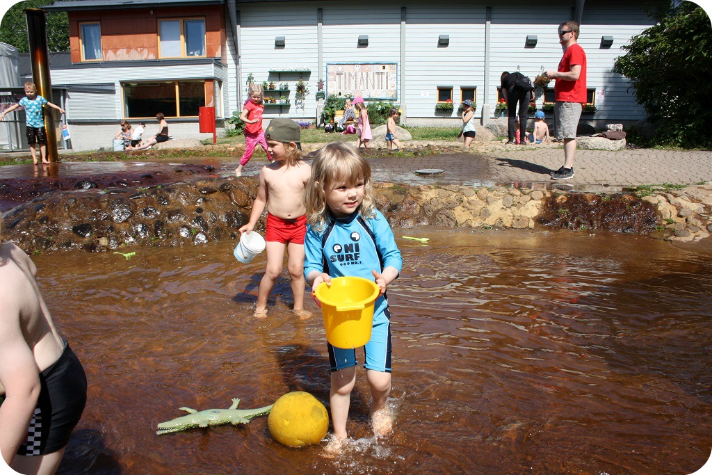 Det blev en kortare dag än vi hade tänkt, men vi hann se mycket. Koiramäki hann vi inte alls med. En sval dusch kunde man ta här och var, i form av kall ånga. Det var skönt!