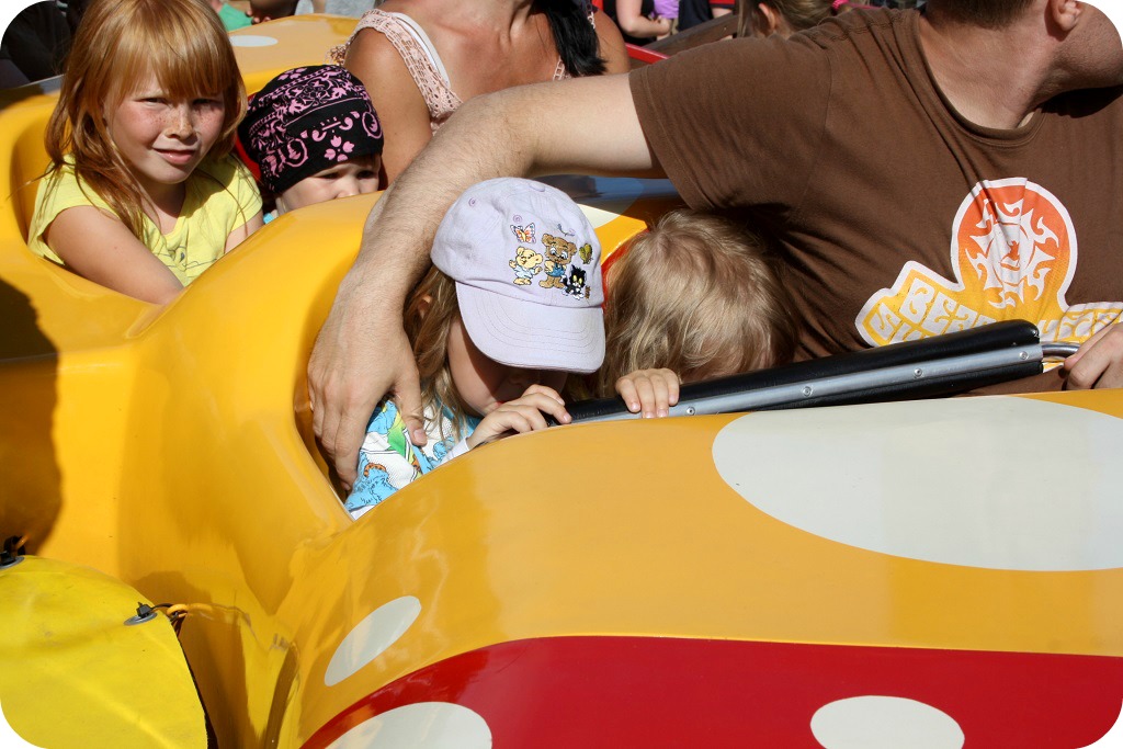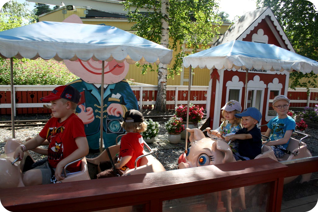 Ungarna fick prova griståget och en annan liten karusell. Det verkade gå bra, men plötsligt började Milja gråta, och sen Isaac och sen William! Men jösses. Vi åkte tillsammans i den gulröda grejen och då grät Milja lite. Men mest för att man inte kunde komma bort när man ville, tror jag.