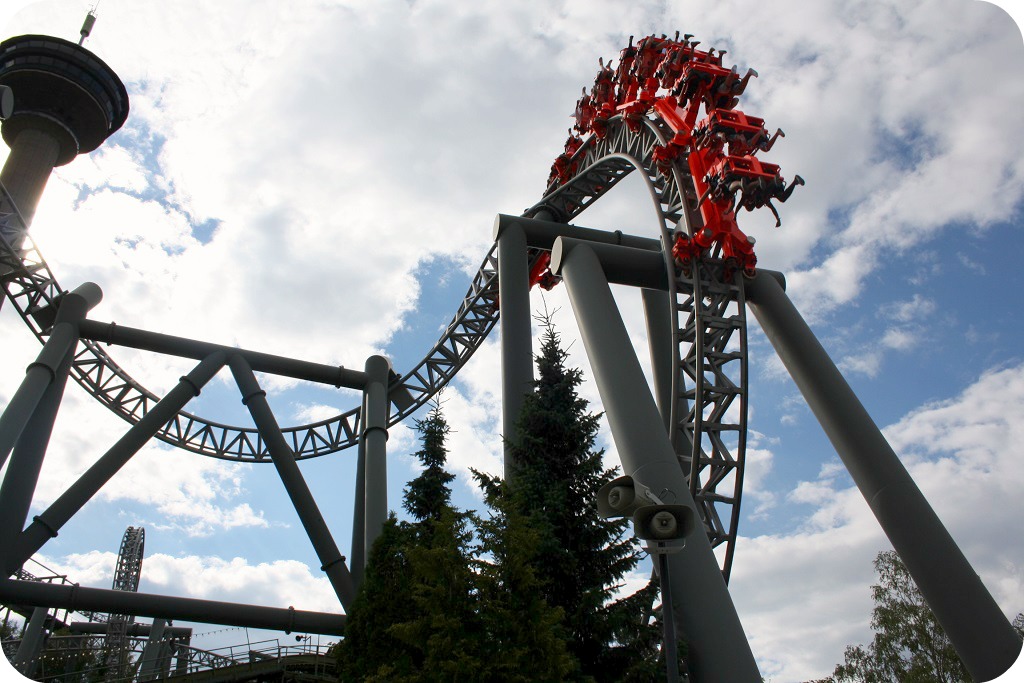 Jag fick också det jag kom dit för! Jag hann med en tur i Tornado och ett åk i Trombi (nedre bilden) där Mika bongade mig med kameran och där största problemet var att det gjorde lite ont i axlarna. Annars var den skoj. Tornado var sjukt bra, men alltför kort! Jag ville ju stanna där och åka mera, mera, fast jag vet att det inte gick att kräva. Det kändes lite som att gå på en ölmässa när man är gravid och kolla på alla andra. Nåja, det stärker kanske sinnet och tålamodet på sikt.