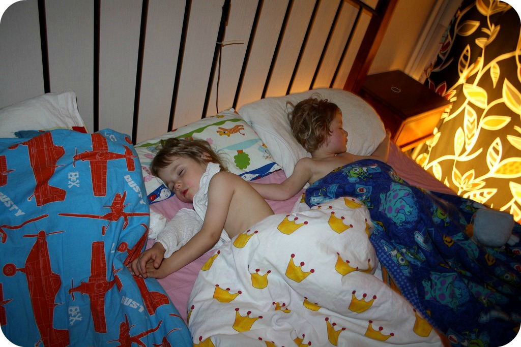 Och fast man har eget rum är det såååå bra att få sova i mammas och pappas säng. Faktum är att jag/vi inte alltid vill att de ska sova i egna sängar. Jo, ibland, men inte alltid. De växer så fort, de hinner sova ensamma.
