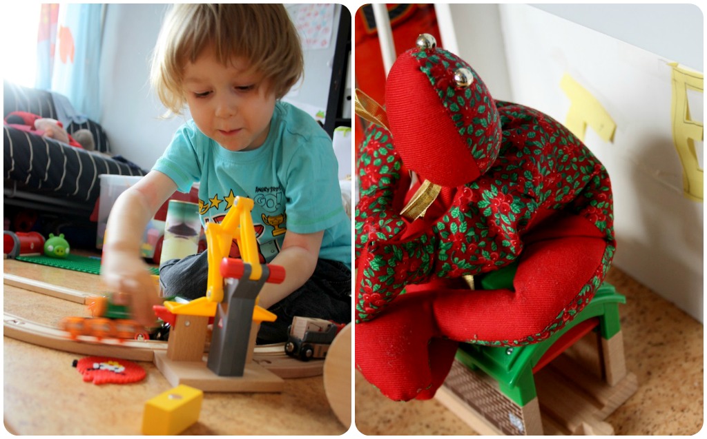 Å andra sidan är det en fröjd att se dem leka så fint som de gör tillsammans ofta. Ibland smiter W iväg och spelar lite Minecraft och ”bara två” i en lek är faktiskt lättare än när alla ska vara med. William fick förresten för sig att bygga en linbana mitt i vårt tågspår, vilket ledde till att Milja snubblade i den på väg till maten och slog sig.