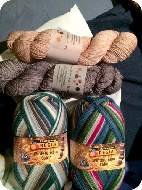 Och garn, det finns det ju gott om. Fast man måste fylla på ibland också. Den här gången var det försenade julklappar (presentkort) jag använde. Härliga Regia har kommit ut med nya sockgarn och de två ovanför är brittitska The Uncommon Thread i lyxig merinoull.